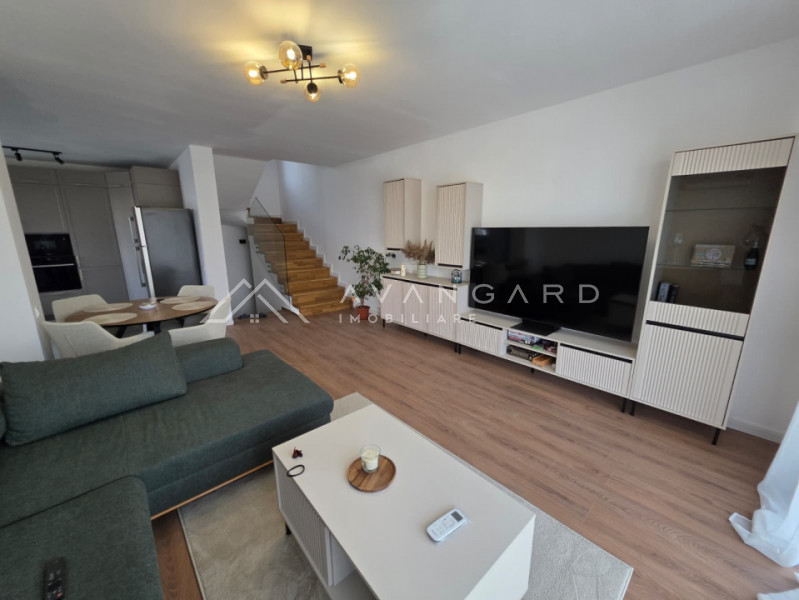 Va propunem spre vanzare o casa tip duplex, un spatiu luminos, armonios si modern, situat la intrarea in cartierul Faget, intr-o zona linistita si ferita de trafic, dar totodata aproape de mijloacele de transport in comun si de drumul principal.